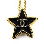 極美品△CHANEL シャネル ABG573 D25K クリスタルココマーク スター 星 ネックレス ペンダント ゴールド ブラック 箱付き フランス製