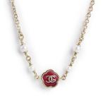 (新品・未使用品)シャネル CHANEL カメリア ココマーク パール チョーカー ネックレス ゴールド レッド ABF943 箱付