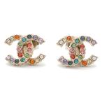 【天白】CHANEL シャネル ピアス マルチカラー マルチストーン ココマーク A19 S ゴールドカラー アクセ 可愛い 箱 レディース