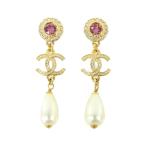 【レア超美品】シャネル CHANEL ココマーク ラインストーン パール スイング ピアス シャンパンゴールド ピンクパープル B21P 【中古】