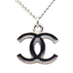 シャネル ココマーク ペンダント ネックレス シルバー ブラック メタル エナメル レディース CHANEL 【中古】