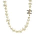 CHANEL シャネル レディースライトゴールド パール&ラインストーンCCマークペンダントネックレス真珠 フラワーパール ココマーク CCロゴCCプレート スイングココマークPENDANT NECKLACECCマーク アクセサリー NL143LGD