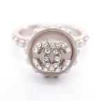 シャネル CHANEL ココマーク ラインストーン リング カメリア 指輪 リング 14号 シルバーメッキ シルバー レディース 中古