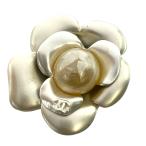 シャネル ヴィンテージ カメリア ココマーク ブローチ アクセサリー フラワー シャンパンゴールド シルバー フェイクパール 00T CHANEL