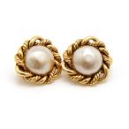 美品 CHANEL シャネル 98C GP イミテーションオーバルパール フラワーモチーフ イヤリング ホワイト/ゴールド レディース