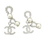 【栄】シャネル ABF732 ココマーク メタル パール ストラス ピアス シルバー ホワイト 小物 アクセ 箱