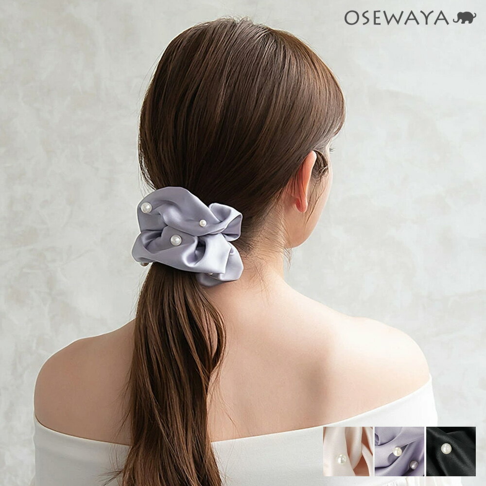 12/4限定2時間30%OFF シュシュ サテン ランダムパール ビッグ | OSEWAYA ヘアアクセサリー ヘアアクセ レディース 女性 大人 プレゼント ギフト 結婚式 カジュアル おしゃれ オシャレ かわいい 可愛い