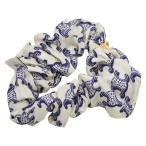 セリーヌ マカダム シュシュ ヘアアクセサリー ホワイト ネイビー シルク レディース CELINE 【中古】