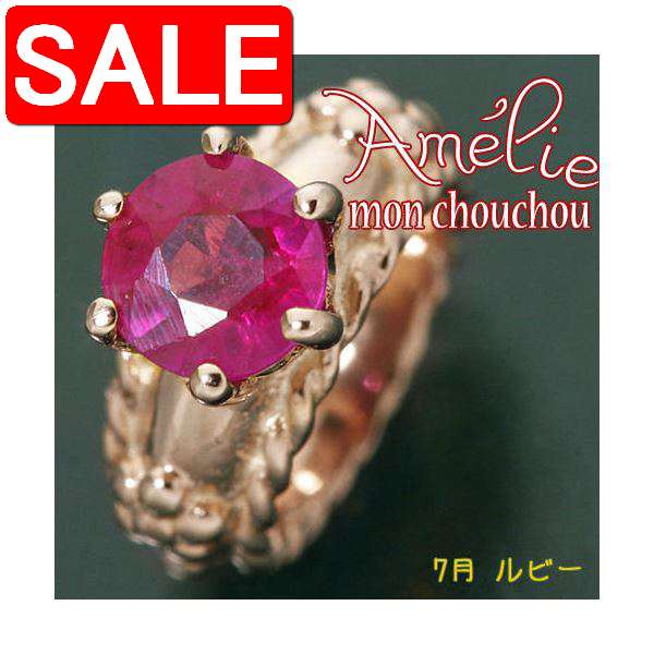 【スーパーSALE 10%OFF!】 amelie mon chouchou Priere K18 誕生石 ベビーリング ネックレス (7月)ルビー 沖縄 離島への配送不可