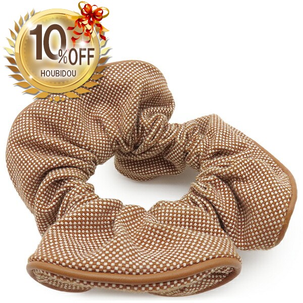 \10%OFFセール/ エルメス HERMES ヘアアクセサリー クラウディア プラン エア シュシュ トワルアッシュ シルク ゴールド 茶 ヘアゴム 【箱】【中古】