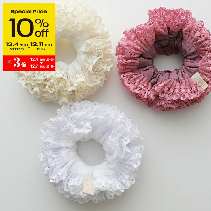【最大2万円OFFクーポン対象・12/4-20時~】GOOD SQUISH グッド スクイッシュ シュシュ QUEEN COLLECTION クイーン レディース フリル レース コットン ヘアゴム ヘアアクセサリー カラー3色【dc_kikaku】