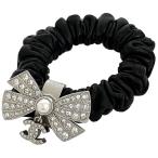 シャネル シュシュ ブラック シルバー金具 クリアストーン 美品 リボン レザー ラインストーン 中古 A22 P CHANEL 髪留め ゴム ヘア アクセサリー ココマーク 黒 定番 人気 ブランドアクセ ヘアアクセ 高級感 お洒落 上品 エレガント ブランド 本物 鑑定済み