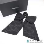 シャネル CHANEL ヘアアクセサリー ヘアゴム シュシュ リボン シルク ブラック ホワイト 中古 新入荷 CH0993