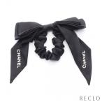 シャネル CHANEL ロゴ リボン シュシュ ヘアアクセサリー シルク ブラック レディース 中古