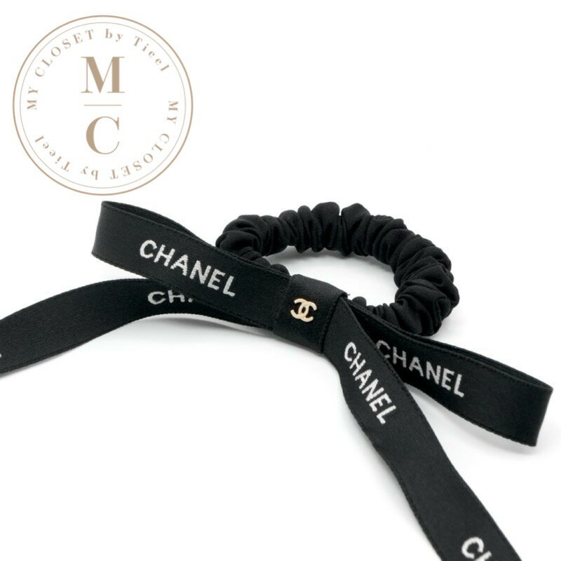 CHANEL シュシュ ココマーク ロゴ 髪留め リボン ブラック 24B【中古】