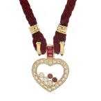 ショパール ハッピーダイヤ ハート 3Pダイヤ 2Pルビー ネックレス K18YG 新品仕上げ済み♪送料無料・返品可.