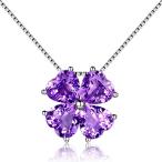 ハート シルバー925 ネックレス レディース 四つ葉のクローバー 誕生石(2月 誕生石 アメジスト)
