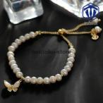 ブレスレット レディース パール 淡水パール 天然パール アクセサリー ジュエリー 蝶々 バタフライ 上品 ホワイト ゴールド リラックス 可愛い 魅力的