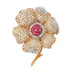 メーカー磨き済み♪ヴァンクリーフ&アーペル ヴィンテージ フラワー ルビー1.53ct ダイヤ7.63ct ブローチ K18YG/WG A+♪送料無料・返品可♪