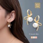 金属アレルギー対応 ピアス ニッケルフリー 18kコーティング キャッチレス フープ 一粒 パール リボン アシメ