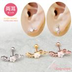 2/10まで50%OFF 両耳セットピアス 0.8mm かわいい 花 ジュエル 沿うピアス 金アレ対応 サージカルステンレス 軟骨 ヘリックス トラガス 耳用
