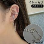 イヤーカフ 2点セット レディース アクセサリー イヤリング ループ チェーン ジュエリー フープ 耳飾り 重ね付け 揺れる ノンホール シルバーカラ