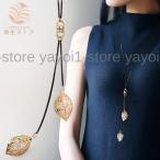 ネックレス ペンダント レディース 女性 アクセサリー ファッション小物 首飾り 葉 リーフ チェーン 透かし ロング ジュエリー クリスタル風 回る