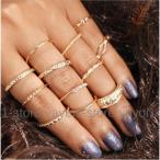 指輪 リング ファッションリング レディース アクセサリー ジュエリー 12点セット レトロ ビンテージ ラインストーン シンプル 細め きらきら お