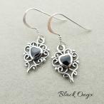 ピアス ハート アラベスク ブラック オニキス 揺れる フック 金属アレルギー対応 シルバー925 レディース アクセサリー アンティーク ジュエリー 母の日 プレゼ