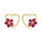 【並行輸入品】14K ゴールド ハート イヤリング レディース ガールズ リアルゴールド フラワー イヤリング スタッド 誕生石 誕生日 プレゼ