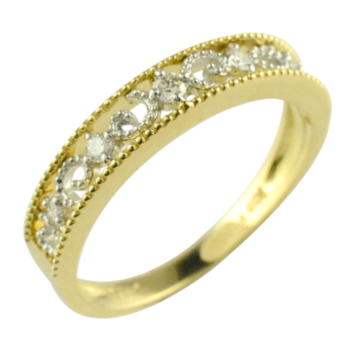 【10%OFFクーポン配布中】 ダイヤモンド リング k18 pt900 イエローゴールド プラチナ コンビ ツタ 蔦 ティアラ調 ダイヤモンドリング ミル打ち ミルウチデザイン 個性派 アンティーク調 指輪 ダイヤ レディース 18k 18金 プラチナ900