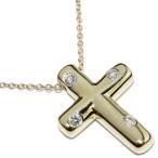 ティファニー ペンダントネックレス K18YG Pt950 ダイヤ4P ドッツクロス ペンダントネックレス