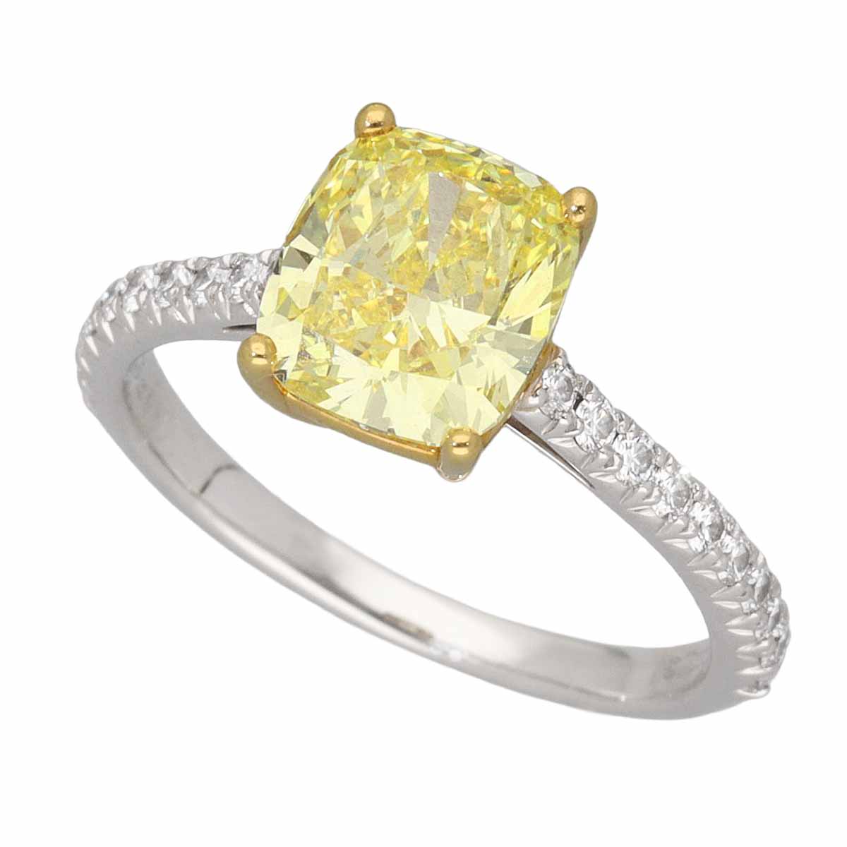 TIFFANY&Co. ティファニー ファンシーインテンスイエロー クッションカット ダイヤモンド(1.76ct FIY-VVS2-Ex)ノヴォ リング Pt950 プラチナ 750 K18 YG イエローゴールド 約8号 #48 鑑定書【送料無料】指輪【中古】24080331