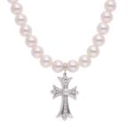 クロムハーツ ミキモト サイズ:16inch NECKLACE PEARL TINY CH CRS P DIA PAVEダイヤ パールネックレス 中古 SS07