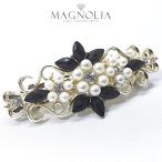 バレッタ パール 結婚式 ゲスト お呼ばれ パーティー 白 黒 花 大人可愛い ヘアアクセサリー