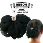 リボンバレッタ シニヨンバレッタ お団子カバー シニヨンカバー ネット付きバレッタ パール ジョーゼット まとめ髪 黒 日本製 RVA-1367 爆買