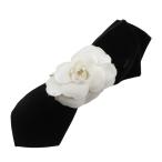 CHANEL シャネル カメリアリボン バレッタ ベロア 黒 レディース【I191625052】中古