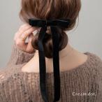 バレッタ ロングリボン ベロア ベルベット 光沢感 揺れる ヘアクリップ ヘアアクセ お呼ばれ パーティー ゆうパケット送料無料