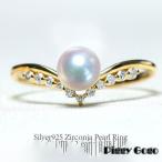 指輪 レディース/パールリング Vライン 繊細 大人可愛い ゴールド ピンキーリング 女性 妻 彼女 嫁 母の日ギフト