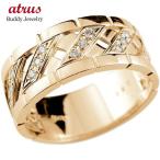 18金 リング メンズ 指輪 幅広 ダイヤモンド イエローゴールドk18 k18 ピンキーリング ダイヤ