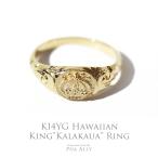 K14 ピンキーリング キング カラカウア 14金 ハワイアンジュエリー プアアリ 王冠 男性 メンズ ペアにも ゴールド プレゼント 印台リング 小指