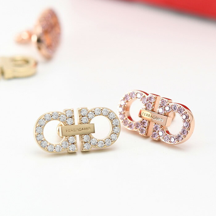FERRAGAMO フェラガモ アクセサリー ピアス ダブル・ガンチーニ クリスタル 760871 レディース ゴールド ピンクゴールド オケージョン ロゴ 両耳 スタッズピアス