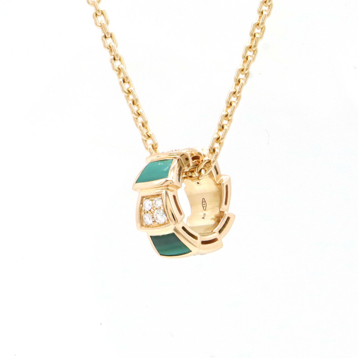 BVLGARI ブルガリ セルペンティ ヴァイパー ネックレス ペンダント K18PG 750PG ピンクゴールド ダイヤモンド マラカイト 355958 【中古】