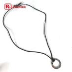 ブルガリ レザー チョーカー ネックレス サークル ペンダント(トンド系枠のみ) SS ブラック系 シルバー金具 39cm程【中古】