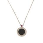 【中古】新品同様 ブルガリ セーブザチルドレン ペンダント ネックレス スターリングシルバー 925 オニキス ルビー BVLGARI [美品][送料無料]