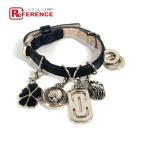 BVLGARI ブルガリ アイコン ロゴ チャーム アクセサリー バングル ブレスレット レザー レディース ブラック 【中古】