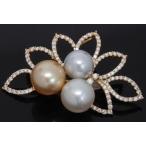 K18YG K18イエローゴールド ミックスパール ダイヤモンド 1.62ct 真珠 ブローチ◇
