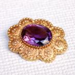 アンティーク アメシスト ゴールド フラワー ブローチ