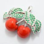 珊瑚 エメラルド 1.05 ダイヤモンド 0.04 ブローチ ペンダントトップ チェリー K18WG 新品磨き仕上げ 中古