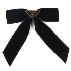 美品△PRADA プラダ 1IF154 トライアングルロゴ 三角プレート ベルベット リボン バレッタ ヘアクリップ ヘアアクセサリー ブラック